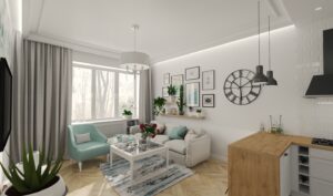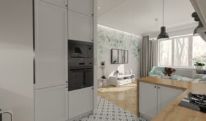 Projekty, które wykonujemy, obejmują czasami tylko kilka pomieszczeń mieszkania. Przedstawiamy remont pokoju dziennego z aneksem kuchennym oraz dostosowanie sypialni dla dwójki dzieci.